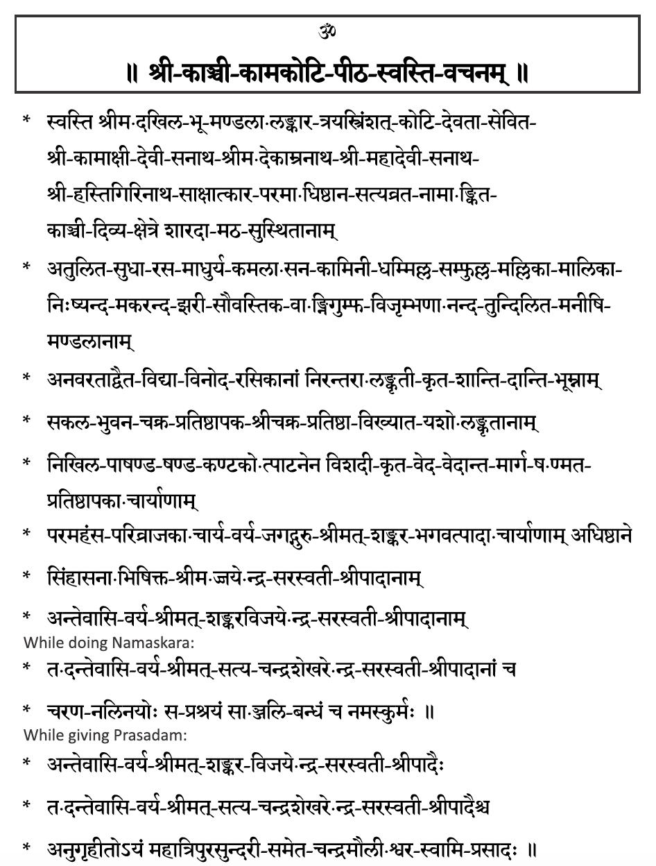 श्री काञ्ची कामकोटि पीठ स्वस्ति वचनम्