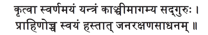 The Sadguru reached Kanchi and prepared with his own hands the golden Yantra, the protector of people, and sent it to Ayodhya.