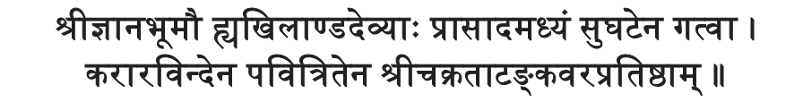 The Guru then reached the temple of Shri Akhilandeshwari in the land of Jnana (Tiruvanaikkoil) and performed the well accomplished Pratishtha (installation) of Taatanaka (earstuds) of Shrichakra for Devi with his holy lotus hands.