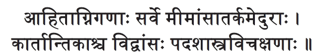 All of them were Aahitagnis (regular performers of Agnihotra etc.), masters in the Shastras of Mimamsa (Profound investigation) and Tarka (Logic), astrology and Vyakarana (grammar).
