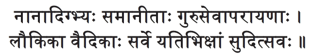 They were all brought from all directions, they were all intent on serving the Guru. There were Vaidikas as well as Loukikas (engaged in mundane work), all keen on offering Bhiksha to the Yati.