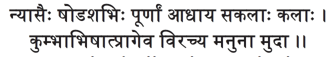 The Guru invoked all Kalas with the sixteen Nyasas on the image of Rama, performed Puja blissfully with appropriate mantras prior to Kumbhabhishekem (Pranapratishtha).