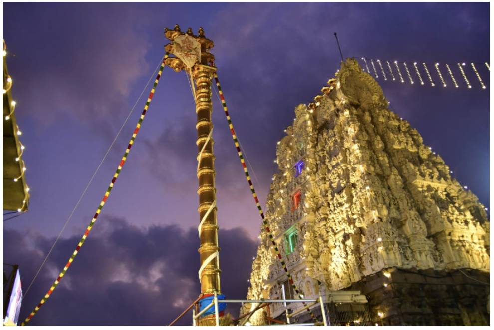 The Dhwajarohanam ceremony was performed on 3rd March morning at the Sri Kanchi Kamakshi Ambal Devasthanam in Kanchipuram. This event marks a significant ritual for the temple, symbolizing the raising of the temple flag as part of the ongoing worship and celebrations dedicated to Kamakshi Ambal. The Brahmotsavam celebrations are performed with the Utsava Kamakshi Vigraham taken in procession around the town on different Vahanams. Procession of Adi Shankaracharya was held daily evening from 5 to 9 March 2025. As part of Brahmotsavam, Nitya Veda Parayanam is performed at the temple. On 14th March, Viswaroopa Darshanam in the morning will be followed by Vidayatri utsavam commencement in the evening.