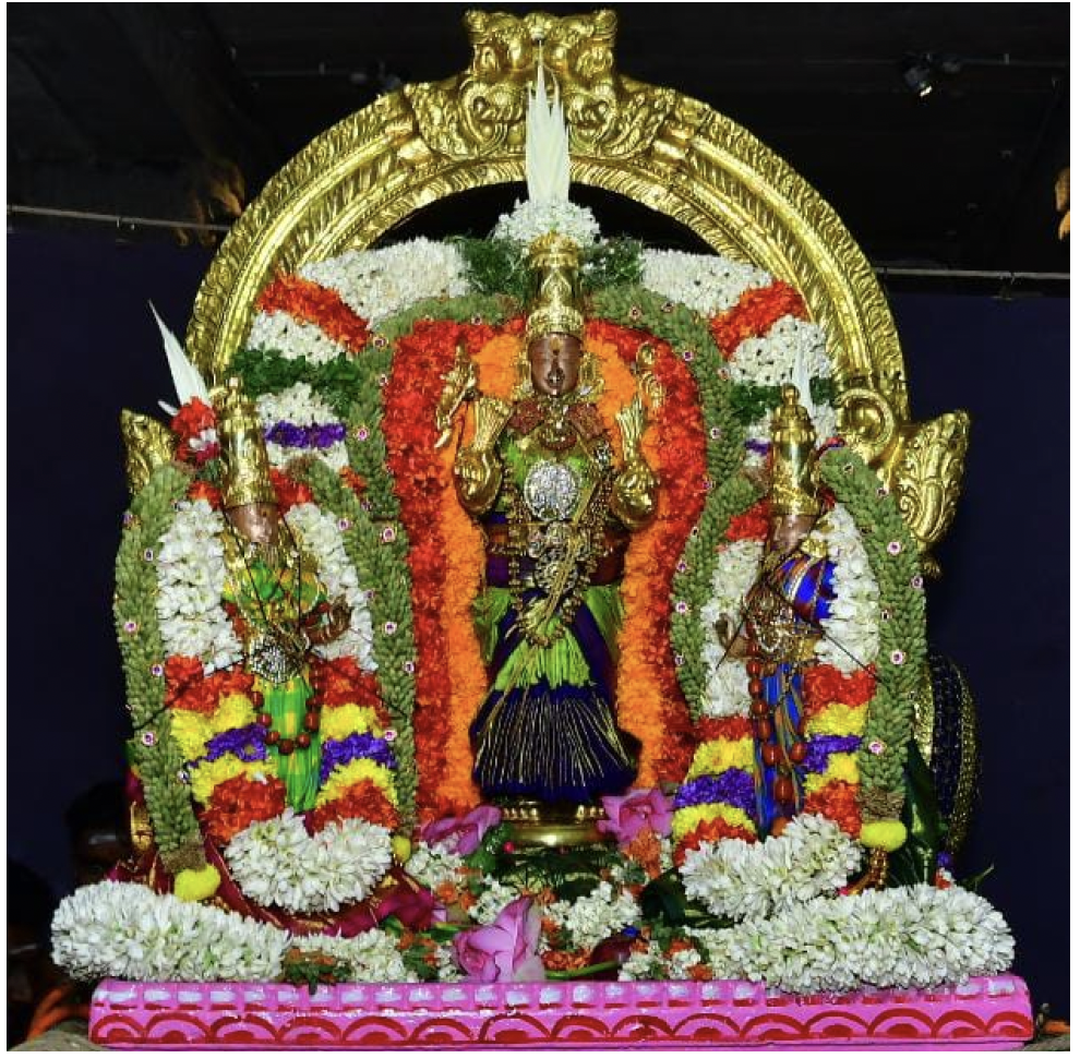 Of the kshetras where Shri Adi Shankara established Shrichakra with his holy hands, Gajaranya kshetra, known as Tiruvanaikka, is an important one. The Sthala Purana says that in this kshetra in the middle of the two branches of Kaveri river, Veda itself took the form of white Jambu (rose apple) tree and performed Tapas. In Tiruvanaikka, celebrated as the ‘water kshetra’ among the five kshetras associated with the five elements, the Universal Mother Parashakti is giving darshan as Shri Akhilandeshwari in the Shri Jambunathaswamy temple and blessing the devotees.