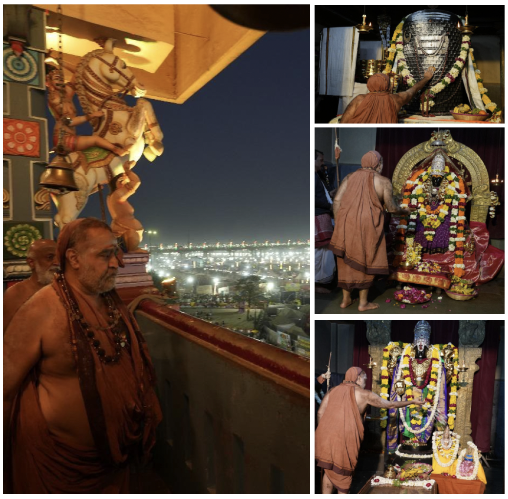 Pujyashri Acharya Swamiji visited Prayagraj during the Mahakumbh, and offered Vishesha Pujas at Sri Kanchi Kamakoti Peetam Adi Shankara Vimana Mandapam, Prayagraj.