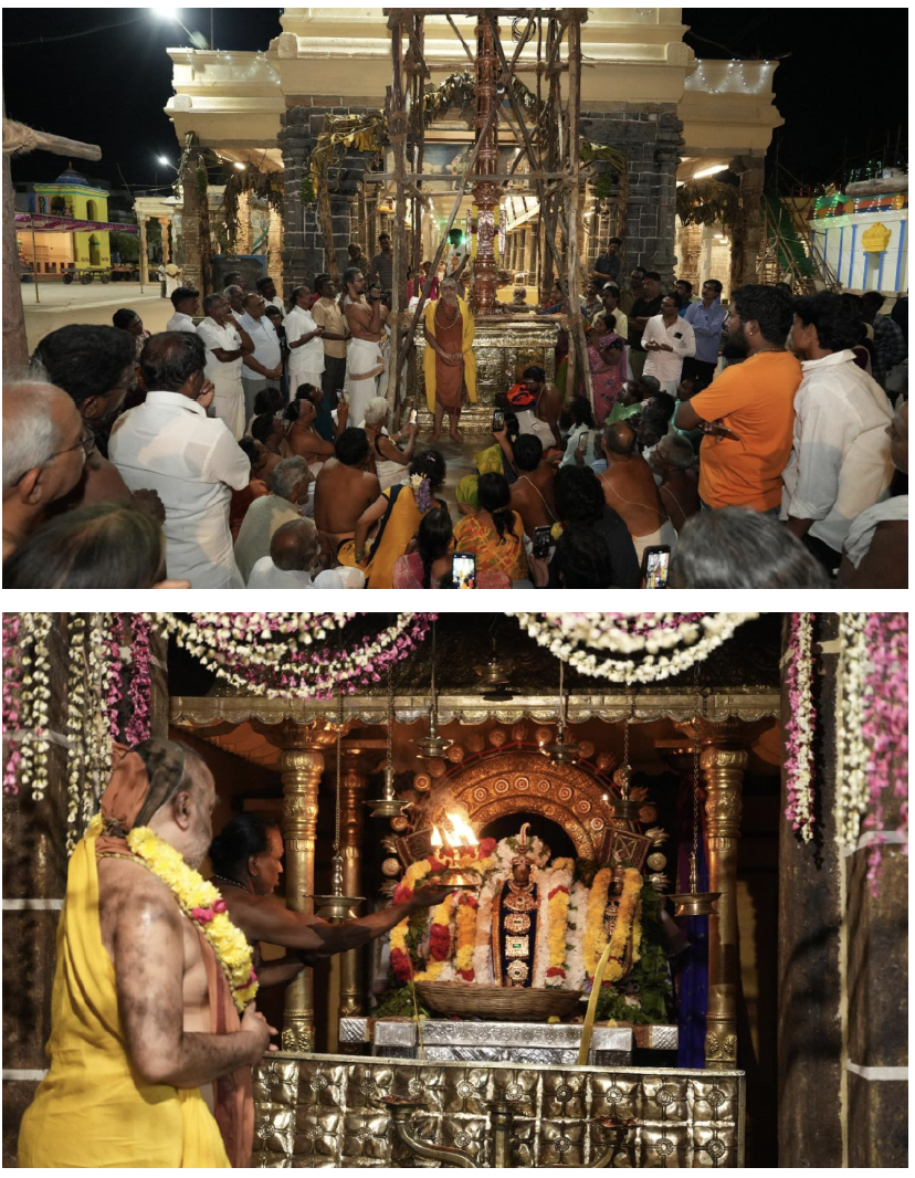 Taatanka Pratishtha Mahotsavam for Ambika was performed at the holy hands of Pujyashri Acharya Swamiji on 16th February 2025.Devotees participated in the Mahotsava in large numbers and had Darshan of Shri Ambal and Pujyashri Acharya Swamiji.
