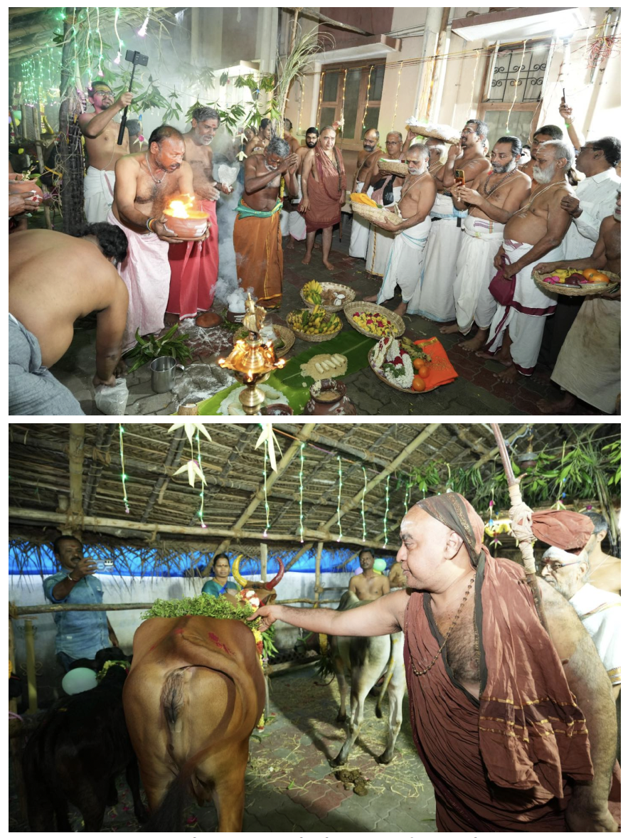Mattu pongal was celebrated at Shrimatam, Kanchipuram and at other Shrimatam goshalas. Go- puja was performed. Pujyashri Acharya Swamiji performed Deeparadhana.
