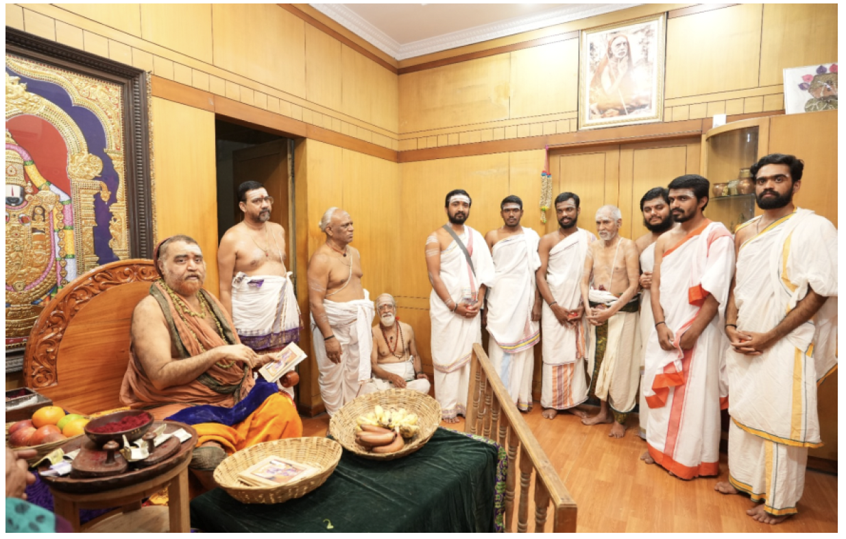 As part of the Aradhana Mahotsavam of HH Jagadguru Pujyashri Chandrasekharendra Saraswathi Mahaswamiji, Hoysala Karnataka Vedic scholars performed Veda Parayanam at Shrimatam, Kanchipuram, from 8th to 10th January 2025. The scholars were blessed by Pujyashri Acharya Swamiji. The recitations included the Rig, Yajur, and Sama Vedas. The event was organized by the Shri Kanchi Kamakoti Swamimalai Vedaparayana Trust.